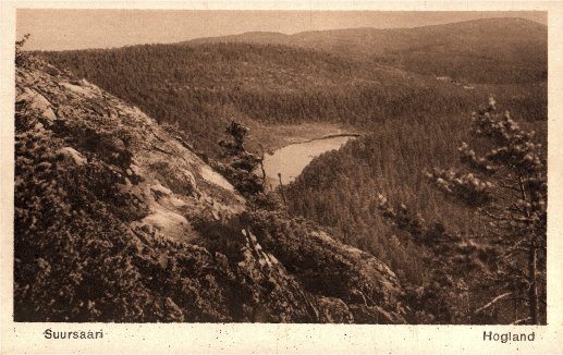 Postikortti Suursaari - Hogland Haukkavuori ja sen eteläpuolella sijaitseva Liivalahdenjärvi k. PK T 3106