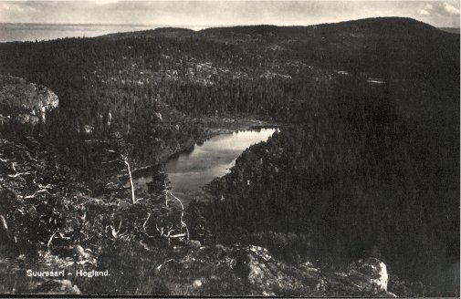 Postikortti Suursaari - Hogland Haukkavuori ja sen eteläpuolella sijaitseva Liivalahdenjärvi k. Suomen Matkailijayhdistys