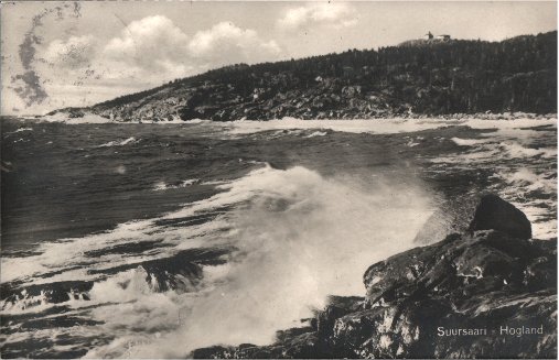 Postikortti Suursaari - Hogland Suursaari. Vähäsomerikonlahti, ylhäällä häämöttää Pohjoiskorkia. 09.07.1934 Suursaari Helsingfors k. Suomen Matkailijayhdistys v. Leander Mattila