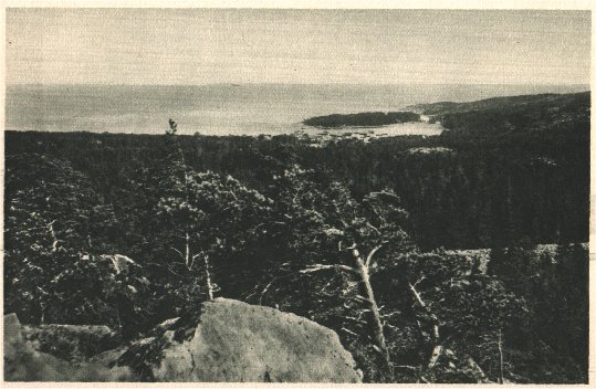Postikortti "Suursaari. Suurkylästä (Suom. Matk. yhd.)"" Näköala Pohjoiskorkialta Suurkylään t. J. E. Rosbergin sarja IV. 21. 5 WSOY