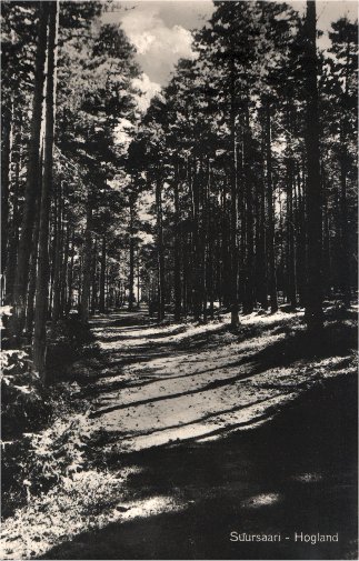 Postikortti Suursaari. Pohjoiskorkialle vievä metsätie. t. Suomen Matkailijayhdistys v. Leander Mattila