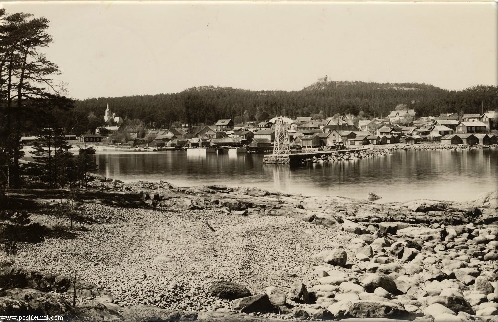 Valokuva postikortti Suursaari - Hogland - Suurkylä Suurkylä Kappelniemestä katsottuna, horisontissa Pohjoiskorkea Hieno kuva Suurkylän rannasta, Markku Lehtisen Suursaari kokoelmasta. t. ? v. ?
