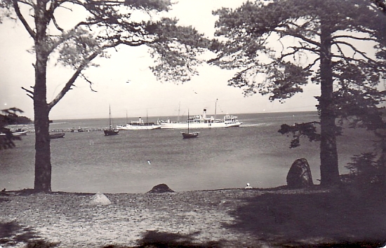 Postikortti (valokuva?), ilman viivoituksia 19.08.1936 Terijoki Julius Sundblom Hangö - s/s SUOMI Suursaaren satamassa - tekstin perusteella kuvassa on peräkkäin s/s SUURSAARI ja s/s SUOMI v: ?