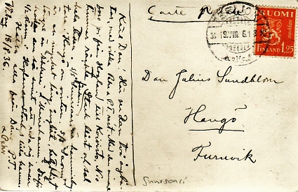 X590.02 Postikortti 19.08.1936 Terijoki Julius Sundblom Hangö (vh)